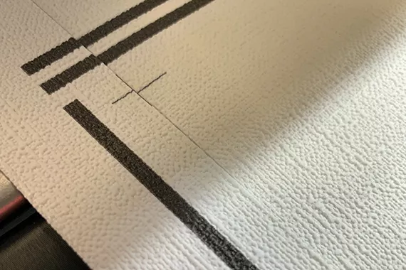 «La qualità del taglio è eccezionale: il taglio a V dei coltelli inclinati a forbice eliminano completamente le linee bianche tra i pannelli. Questo significa che i posatori non devono più fare ritocchi manuali in fase di posa e che l'effetto parete continua è garantito.