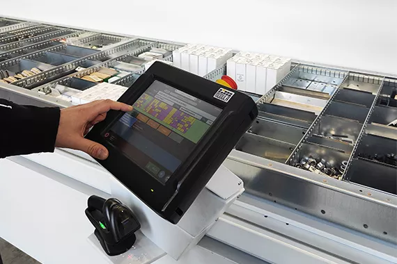 With the vertical warehouse, material retrieval is much faster. Operators can generate pick lists and receive components directly in the same location without manually searching for them.