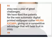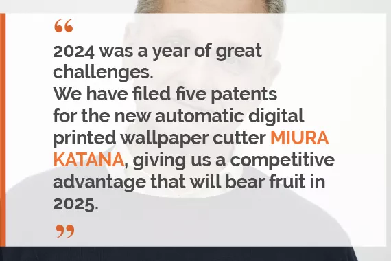 Our innovation focused on the range of laminators and automatic cutters, achieving results that were rewarded with very positive feedback. In particular, we filed five patents for the new automatic cutter for digitally printed wallpaper, giving us a competitive advantage that will bear fruit in 2025.