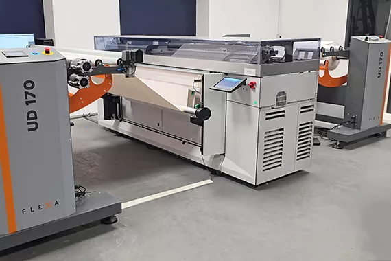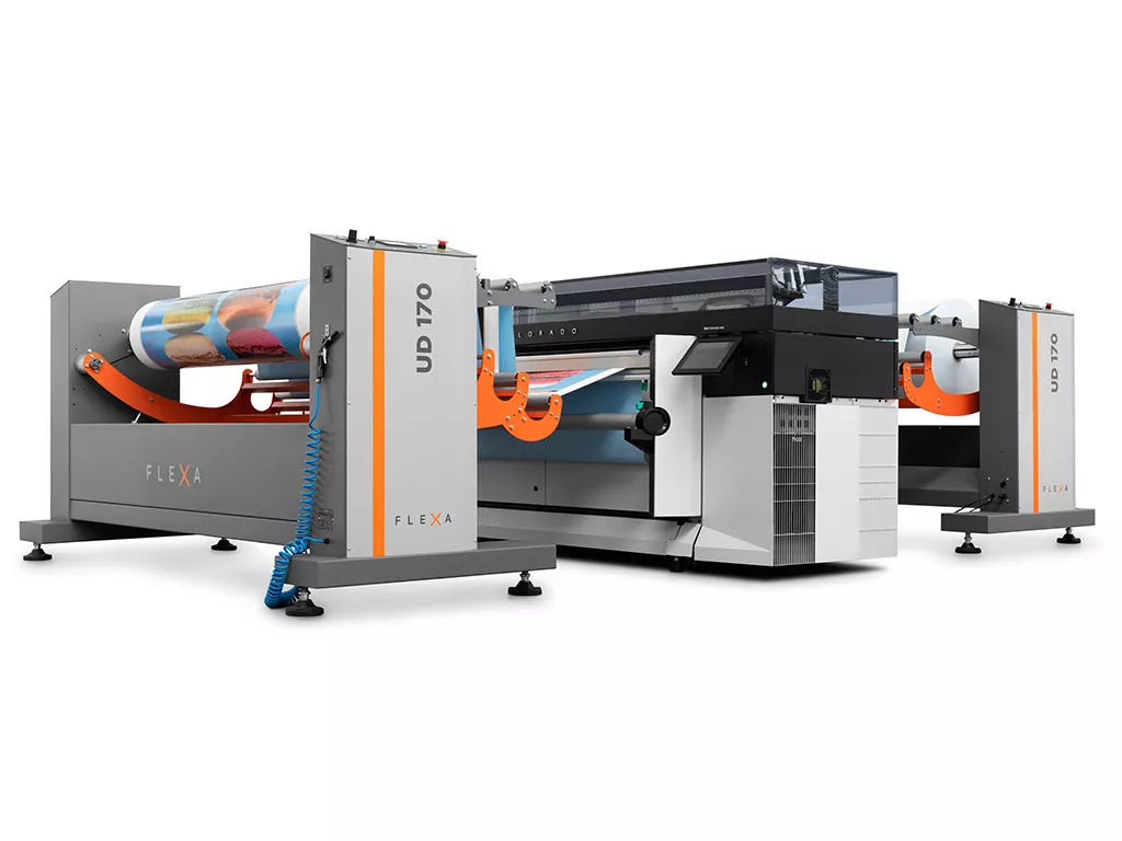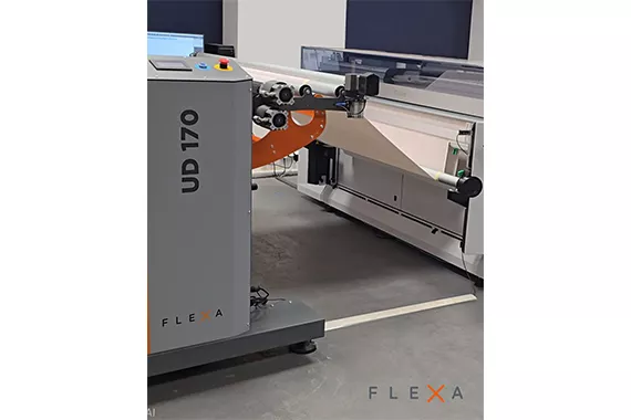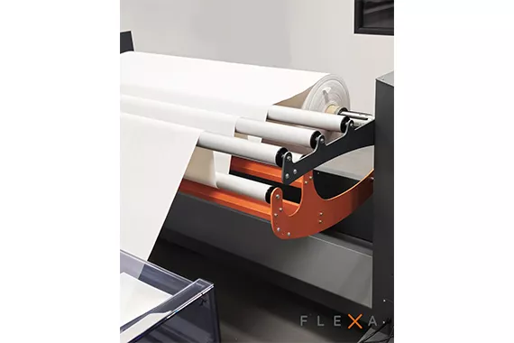 The Flexa unwinding and rewinding system works with jumbo rolls that weigh up to 400 kg and have a diameter of 600 mm and is fully compatible with Canon Colorado.