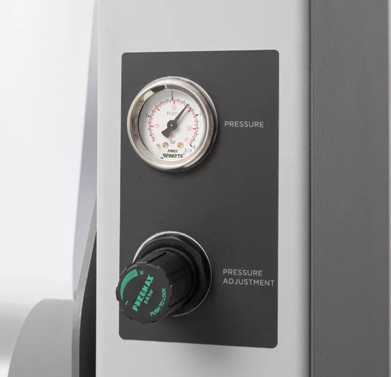 NEW Pneumatic lifting/lowering of the upper roller via control panel or smart foot pedal (lowering only)