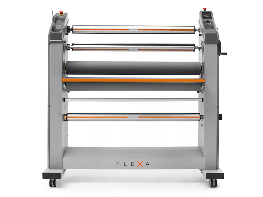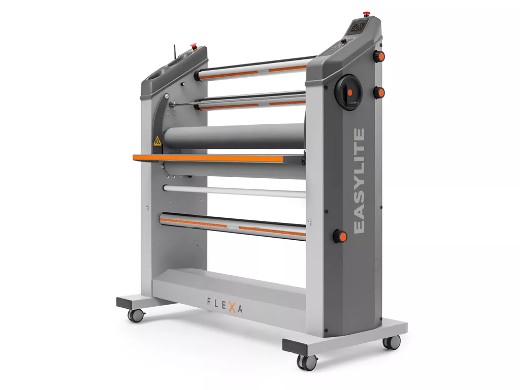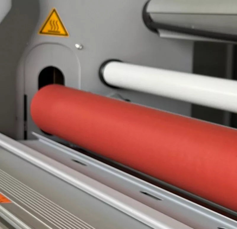 Laminatrice professionale compatta dotata di rullo superiore riscaldato.