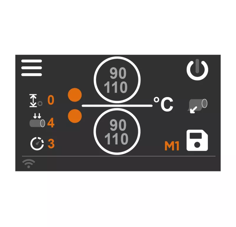 Grazie all'innovativo design grafico del software e il display touch screen le impostazioni dei parametri di lavoro come temperatura, pressione e velocità sono molto intuitive garantendo un risultato perfetto di laminazione.
