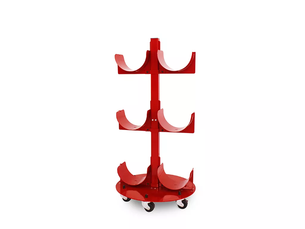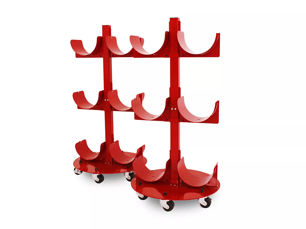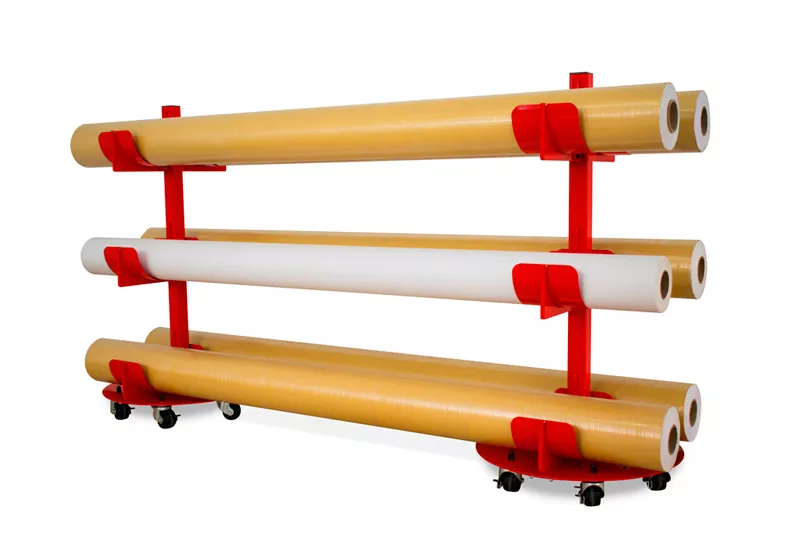 Carrello trasportabile con capacità di stoccaggio fino a 8 bobine di grande formato.