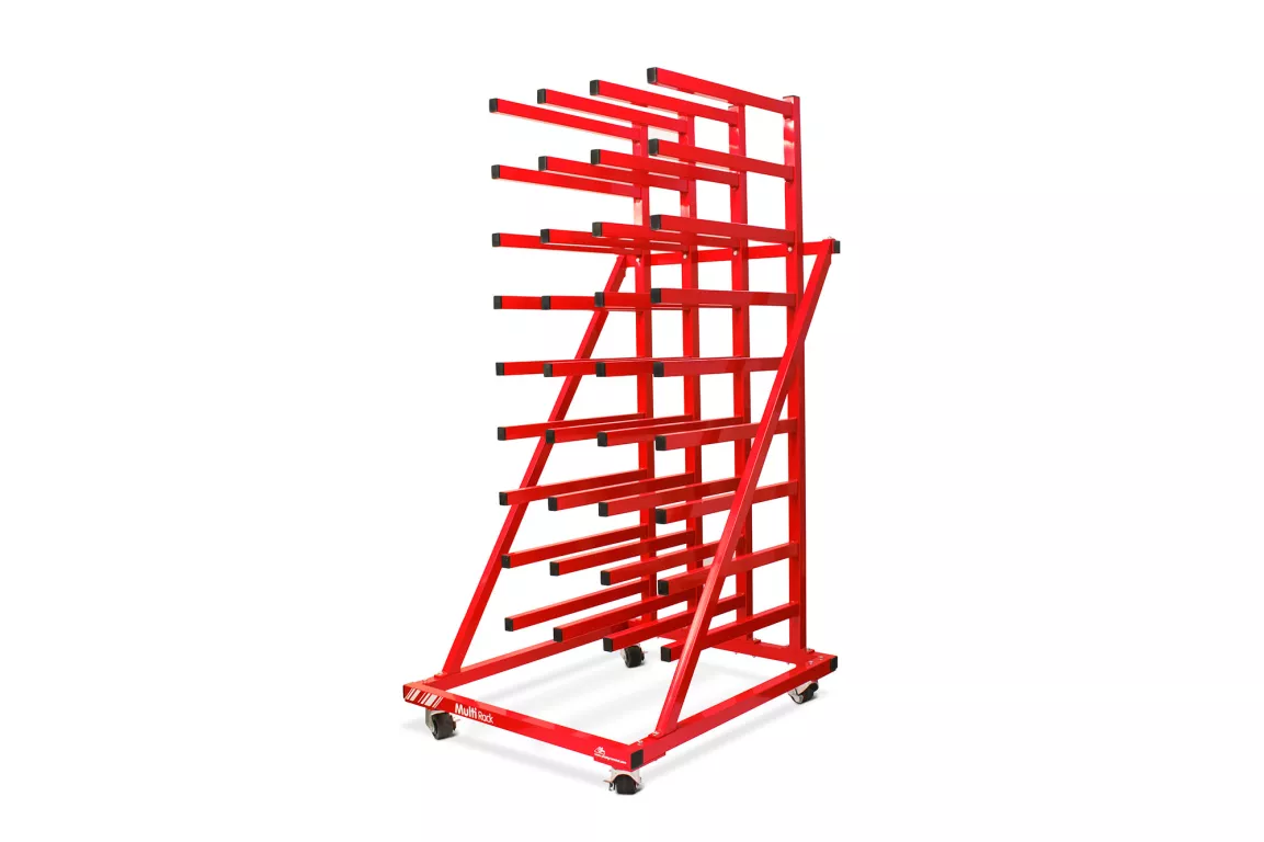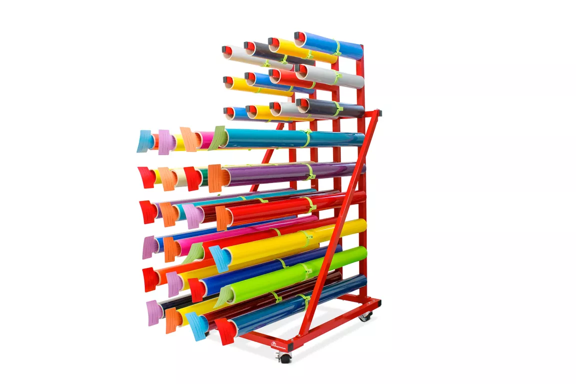 Portarotoli orizzontale compatto con capacità di stoccaggio fino a 36 bobine.