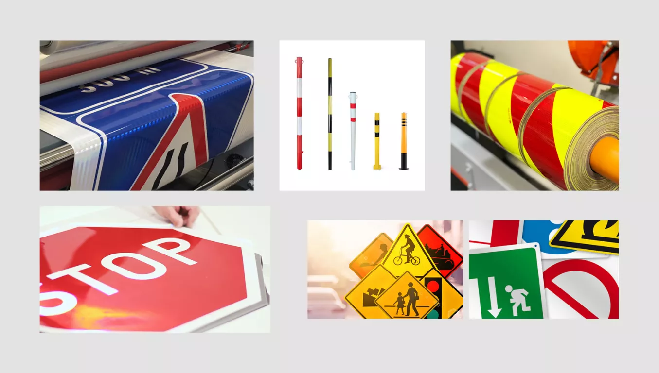 Laminatrici a caldo, taglierine elettriche e automatiche per materiali flessibili e tagliarotoli fanno parte delle attrezzature dedicate alla realizzazione di cartelli stradali.