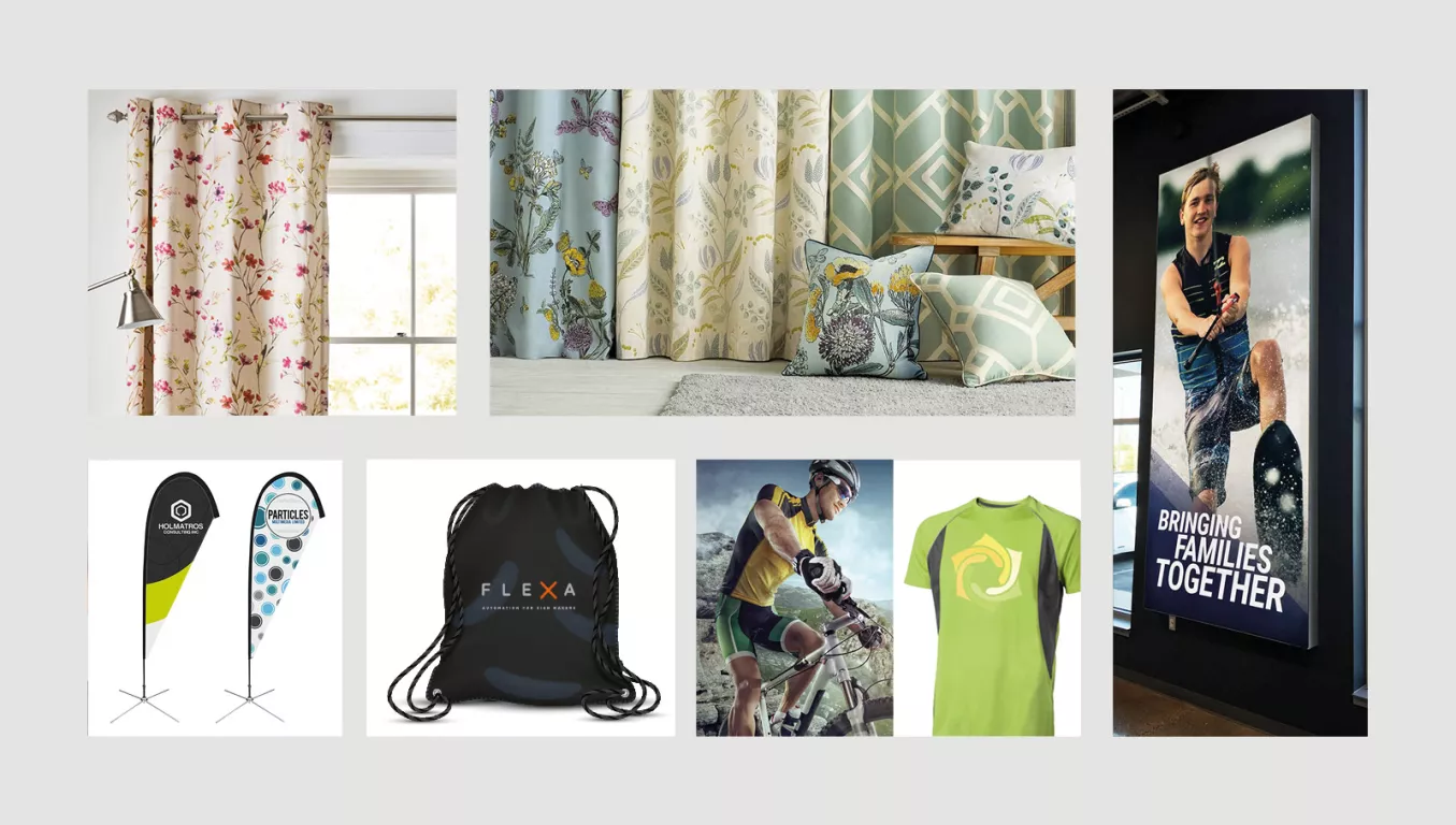La stampa digitale su tessuti ha molteplici applicazioni per il suo alto grado di personalizzazione e l'utilizzo del tessuto si sposa con il tema della sostenibilità, in quanto può essere lavato e usato più volte, è poco ingombrante per il trasporto ed è pertanto sempre più preferito al materiale in PVC.